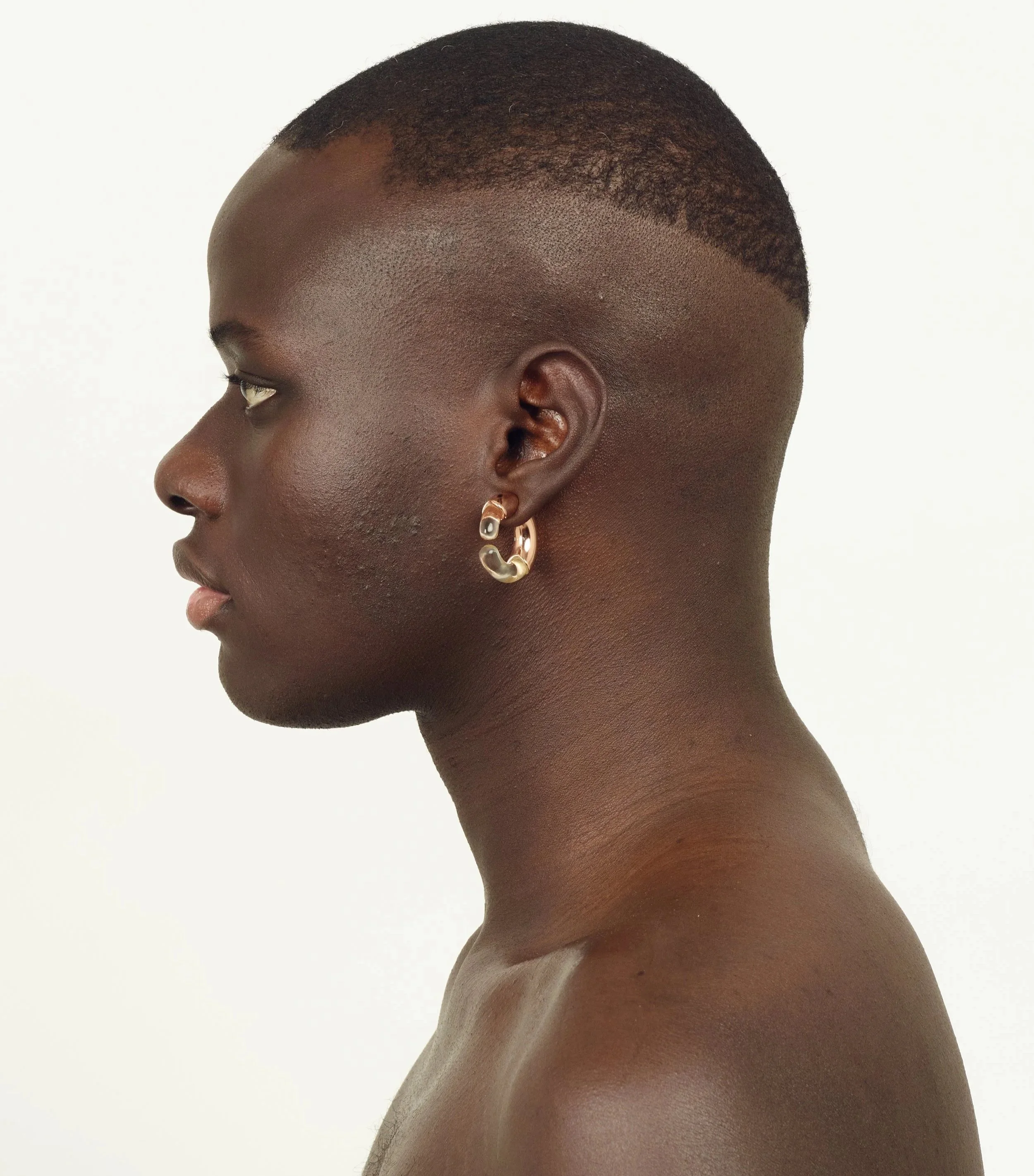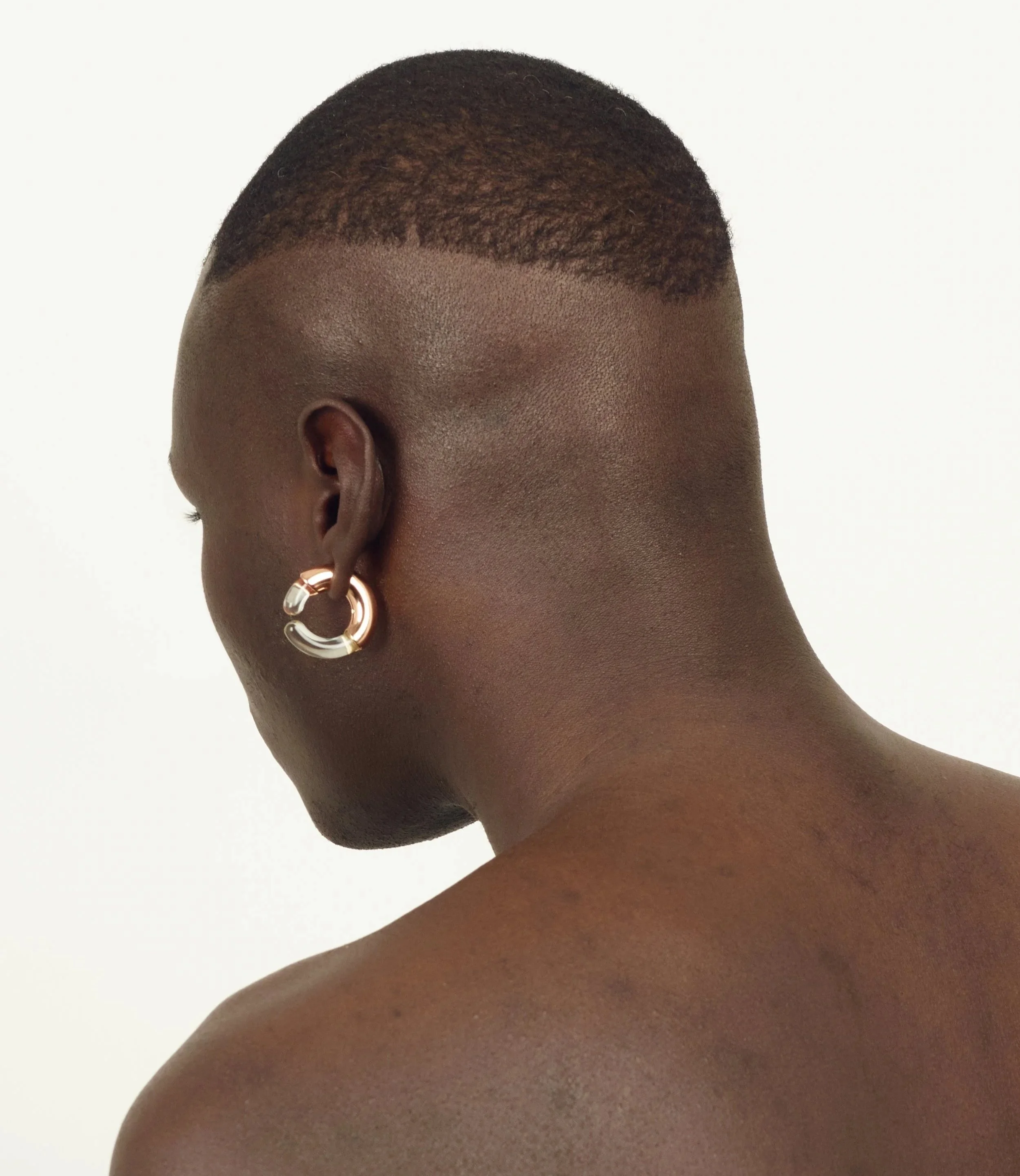 Earring 4The bulk of the earring is made of resin which was then hand dyed in our atelier in Paris. 1 Micron Palladium coated brass was used for the end cuffs